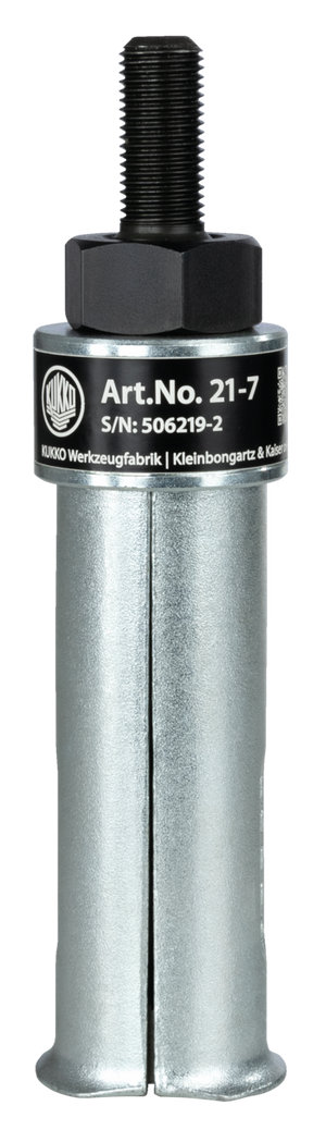 The internal extractors of the series 21 are used for pulling out internal bearings, bearing outer rings, and bushings in craftsmanship, workshops, and industry. The multi-shelled design of the internal extractors with their extra large gripping edges allows for the safe pulling out of internal components. The series 21 impresses with its compatibility and versatility of applications. Depending on the application, there are numerous variants of the optionally 2-jaw or 3-jaw internal extractors. They are used either together with counter stays or with sliding hammers.