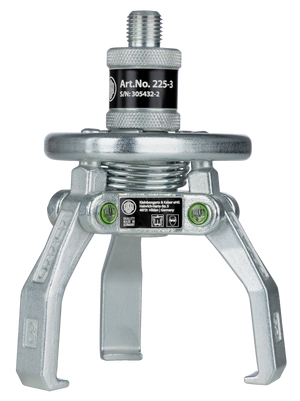 The 3-jaw puller with self-centering jaws is used for extracting bearings, gears, and discs. It allows for the removal of any component that is mounted on a shaft and is freely accessible from the outside. The specially shaped jaws are connected to a spring. This ensures self-tensioning of the jaws and prevents possible slipping during the extraction process. Thanks to the quick-release mechanism, the jaws can be attached to the component to be pulled in no time. The 3-jaw design guarantees even load distribution and thus a particularly secure grip on the part being extracted.