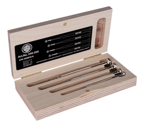 The nickel-free watchmaker screwdriver sets in the wooden box of series 250 are used for precision work for the highest demands in craftsmanship and watchmaking. The screwdrivers with rotatable hexagon heads and knurled fine screw grips allow for the controlled transmission of strong torque. Made from corrosion-resistant aluminum, the handle ensures exceptionally high strength. Thanks to the rejuvenated handle shape, quick screwing is enabled. Depending on requirements, the set contains screwdrivers for various profile sizes and types. The information in the wooden box helps know exactly which screwdriver is needed.