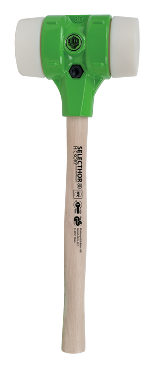 With the Selecthor NY soft-face hammer featuring impact inserts made of nylon, sensitive surfaces can be processed, positioned, and aligned accurately. The impact inserts are particularly used in tool and machine engineering, during bending and folding work, in body construction, or for loosening tires/wheels. For even more versatile application possibilities, the soft-face hammer can be equipped with impact inserts made of rubber and/or nylon plastic. The innovative anti-kickback inlay provides optimal impact force while minimally stressing the joints.