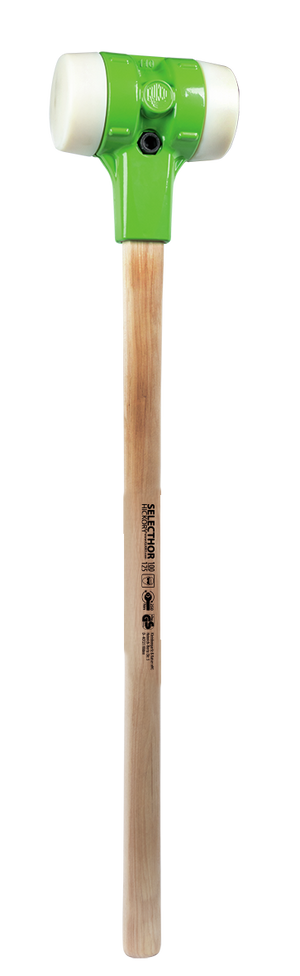 The Selecthor NY/NY sledgehammer is equipped on both sides with nylon inserts and offers excellent striking properties. The white nylon striking insert with a hardness of Shore 85D is a very hard, durable insert with very high strength. This sledgehammer is suitable for universal use, for driving in wooden posts, for disassembly, or for demolition work. It is available in sizes D100 and D125. The innovative anti-kickback inlay ensures optimal striking power with minimal joint stress.