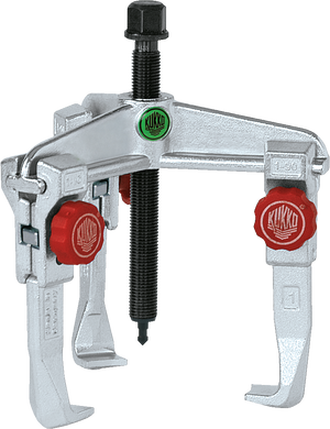 The 3-jaw universal puller with quickly adjustable jaws is used for pulling bearings, gears, and discs in all common sizes for craft, workshop, and industry. It allows for loosening any component that sits on a shaft and is freely accessible from the outside. Equipped with robust standard jaws and practical hand knobs, the puller all-rounder ensures a particularly safe, user-friendly, and non-destructive disassembly both for external extraction and internal extraction. The 3-jaw design guarantees an even load distribution and thus a particularly secure grip on the part being pulled.