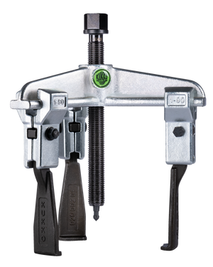 The 3-jaw universal puller with extremely narrow jaws and trapezoidal support surface at the claw is used for securely pulling gear wheels, bearings, sprockets, synchronizers, and similar components. This allows for the loosening of any component mounted on a shaft that is freely accessible from the outside. The special design of the jaws ensures that even very tight and hard-to-reach spaces can be accessed. The 3-jaw design guarantees a uniform load distribution and thus a particularly secure grip on the part being pulled.
