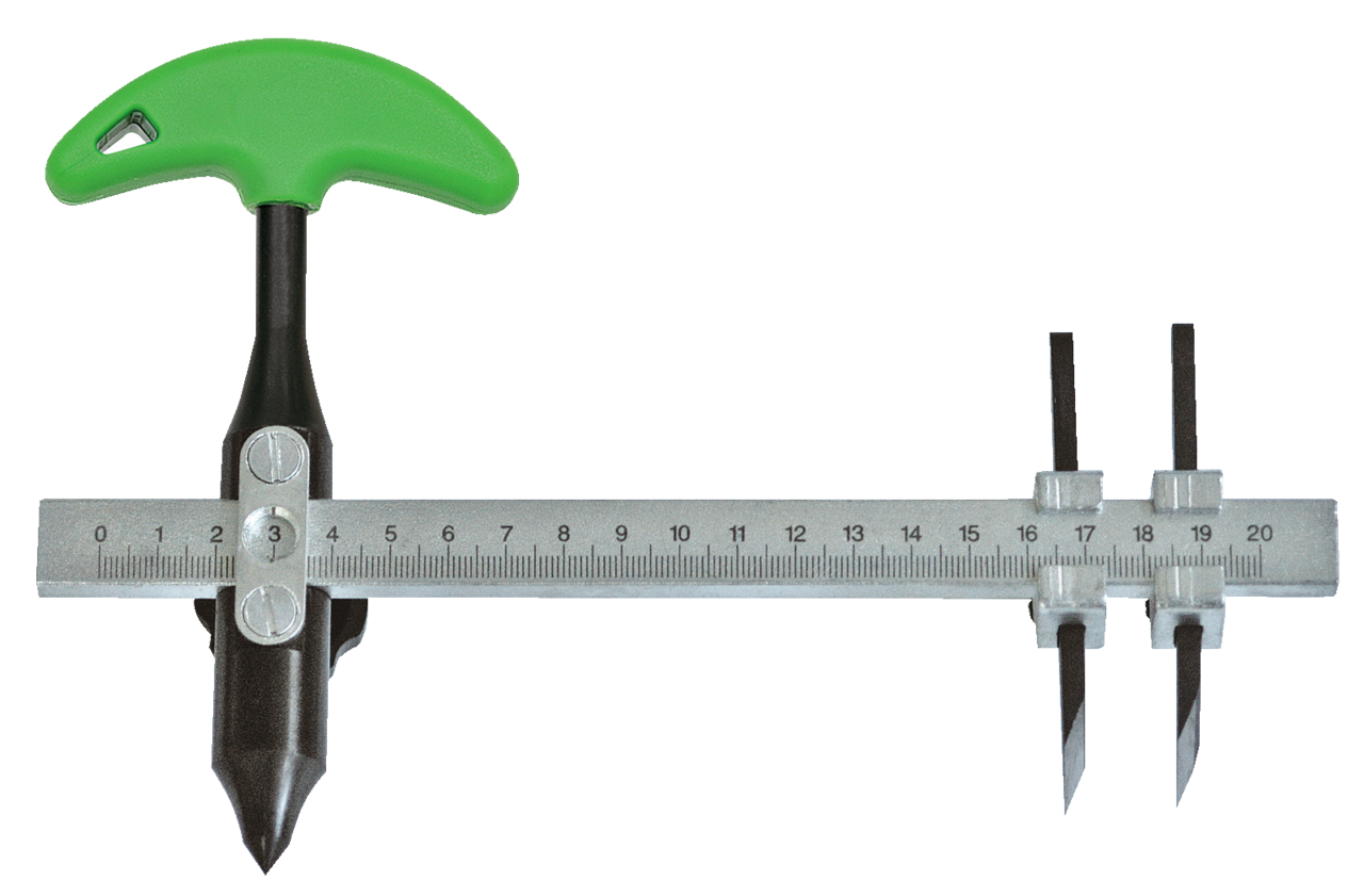 The disc cutter with two blades is used for cutting discs and sealing rings made of rubber, leather, paper, particle board, and plastic. The two sharp cutting blades are guided on a rail that can be aligned with millimeter precision. With the disc cutter, precise circular cutouts can be made with diameters ranging from 40 to 200 mm.