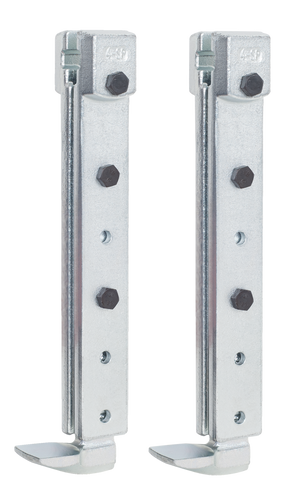 The pair of two height-adjustable puller jaws is suitable for 2-jaw pullers. The robust puller jaws guarantee a particularly safe removal of bearings, gears, and discs.