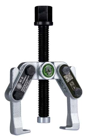 The 2-jaw universal puller with swiveling jaws is used for pulling bearings, gears, and discs in all common sizes for crafts, workshops, and industry. It allows for the loosening of any component that sits on a shaft and is externally accessible. The swiveling jaws also provide maximum freedom of movement for individual adjustment to the respective spread and depth, even in restricted environmental conditions. Within series 41, there are various versions of the puller. The compact model 41-0 features a hexagon drive and a flat pressure piece on the spindle. The models 41-1 and 41-2 have a freely movable T-handle instead of the hexagon, allowing for work in tight spaces. Starting from size 41-3, the pullers are equipped with a hexagon drive and a dual spindle tip. This allows for the largest pulling forces to be achieved (3 to 7 tons).