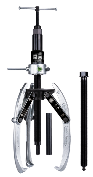kukko 47-1-b heavy-duty, 3-arm universal puller 300 x 300 mm with swiveling puller legs, combination crosshead and grease-hydraulic spindle (tractive force up to 15 t) for crafts, workshops, and industry