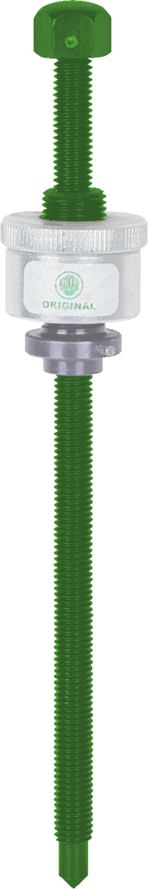 The mechanical pressure spindles are spare parts for KUKKO pullers and guarantee excellent sliding properties in the thread groove thanks to their special coating. The mounted, freely rotating centering tip protects the shaft from damage when applying pulling force.