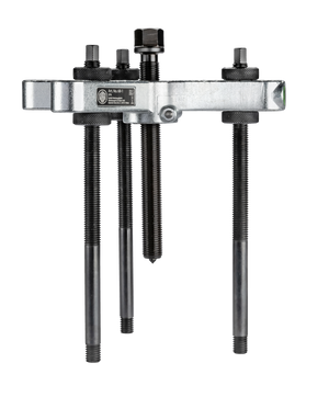 The puller 68-0 can be combined with separating devices from the series 13, internal extractors from the series 21, ball bearing puller sets from the series 69, and other parts (e.g., hooks or oil hooks). The multi-crossbar of the series 68 provides space for two, three, or four foot bolts, depending on the application. This guarantees a larger contact surface and thus a more even distribution of force. Below the crossbar, three small magnets are attached, which serve to align and secure the Power Nut.