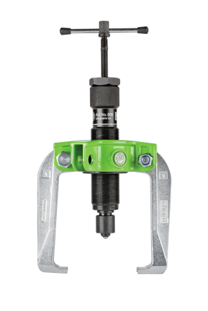 The handy 2-jaw puller with force-amplifying, self-centering puller jaws and hydraulic spindle is used for extracting particularly stubborn bearings, gears, and discs in all common sizes for craft, workshop, and industry applications. When the spindle is tightened, the puller jaws are automatically centered. The hydraulic spindle of series 800 is the motor of the puller and achieves a pulling force of 10 t. As a true powerhouse, the spindle stands out with a compact design, ease of use, and portable application. The spindle is ribbed on the sides to provide a particularly good grip for fingers when repositioning.