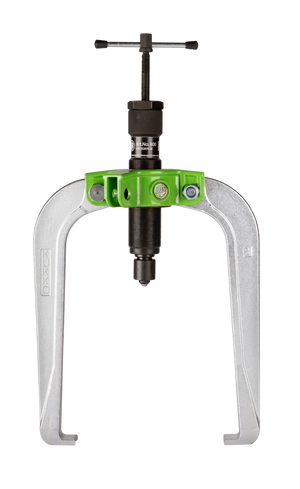 The handy 2-jaw puller with force-amplifying, self-centering puller jaws and hydraulic spindle is used for extracting particularly stubborn bearings, gears, and discs in all common sizes for craft, workshop, and industry applications. When the spindle is tightened, the puller jaws are automatically centered. The hydraulic spindle of series 800 is the motor of the puller and achieves a pulling force of 10 t. As a true powerhouse, the spindle stands out with a compact design, ease of use, and portable application. The spindle is ribbed on the sides to provide a particularly good grip for fingers when repositioning.