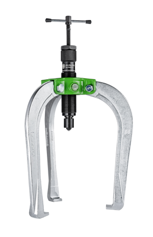 The handy 3-jaw puller with force-amplifying, self-centering jaws and hydraulic spindle is used for pulling especially tight-fitting bearings, gears, and discs in all common sizes for crafts, workshops, and industry. By tightening the spindle, the jaws are automatically centered. The hydraulic spindle of the 800 series is the motor of the puller and achieves a pulling force of 10 t. As a true power wonder, the spindle impresses with its compact design, easy usability, and portable application. The spindle is ribbed on the sides to provide a particularly good grip for fingers when repositioning. The 3-jaw design guarantees an even load distribution and thus a particularly secure hold on the part to be pulled off.