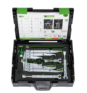 The 13-piece Universal Puller Set from the 2030 series is used for 2-jaw and 3-jaw pulling of bearings, gears, discs, etc. in craftsmanship, industry, and workshops. The 2030 series impresses with its diverse combination options. The kit allows for the assembly of 8 different variants through the combination of puller jaws and extensions.