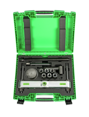 The 15-piece puller device for truck axles in the K-226 series case is used for pulling wheel hubs on SAF and BPW axles for trucks and commercial vehicles in the automotive sector. In addition to puller devices, it also includes a hydraulic additional press and several adapters that enable application on most common models.