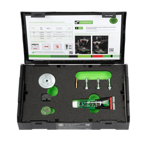 The reversible pressure piece set is considered the optimal addition for KUKKO pressure spindles with interchangeable tips and can be used for any mounting position. For individual adjustment to the shaft, the pressure piece is inserted into the spindle. It is possible to choose between different pressure pieces (e.g., with a flat or concave bearing surface). The set also includes a 3-piece universal pressure piece set for stepwise adjustment on hollow shafts, as well as a magnetic mini-LED.