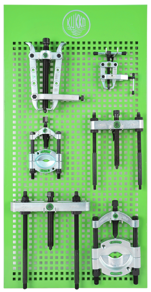 The puller range for separation pulling is a wall panel equipped with suitable tools for application and storage in workshops and industry. The range includes the 2-jaw bearing puller Cobra in two different sizes, as well as several separation and pulling devices. This allows parts to be gently separated from the seat before they can then be pulled out from the outside.