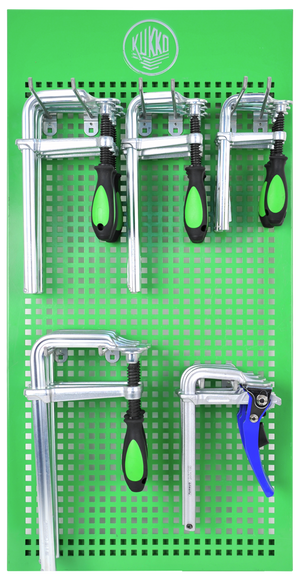 The premium all-steel clamping range is a wall panel equipped with matching tools for use and storage in workshops and industry. The range includes various VIRIDIS all-steel screw clamps with a 3K comfort grip, as well as VIRIDIS all-steel lever clamps. With these, multiple workpieces can be held and clamped gently, effortlessly, and safely.