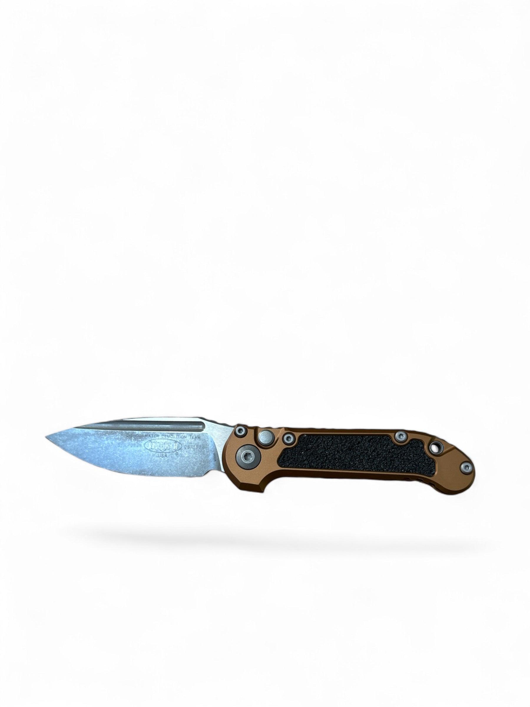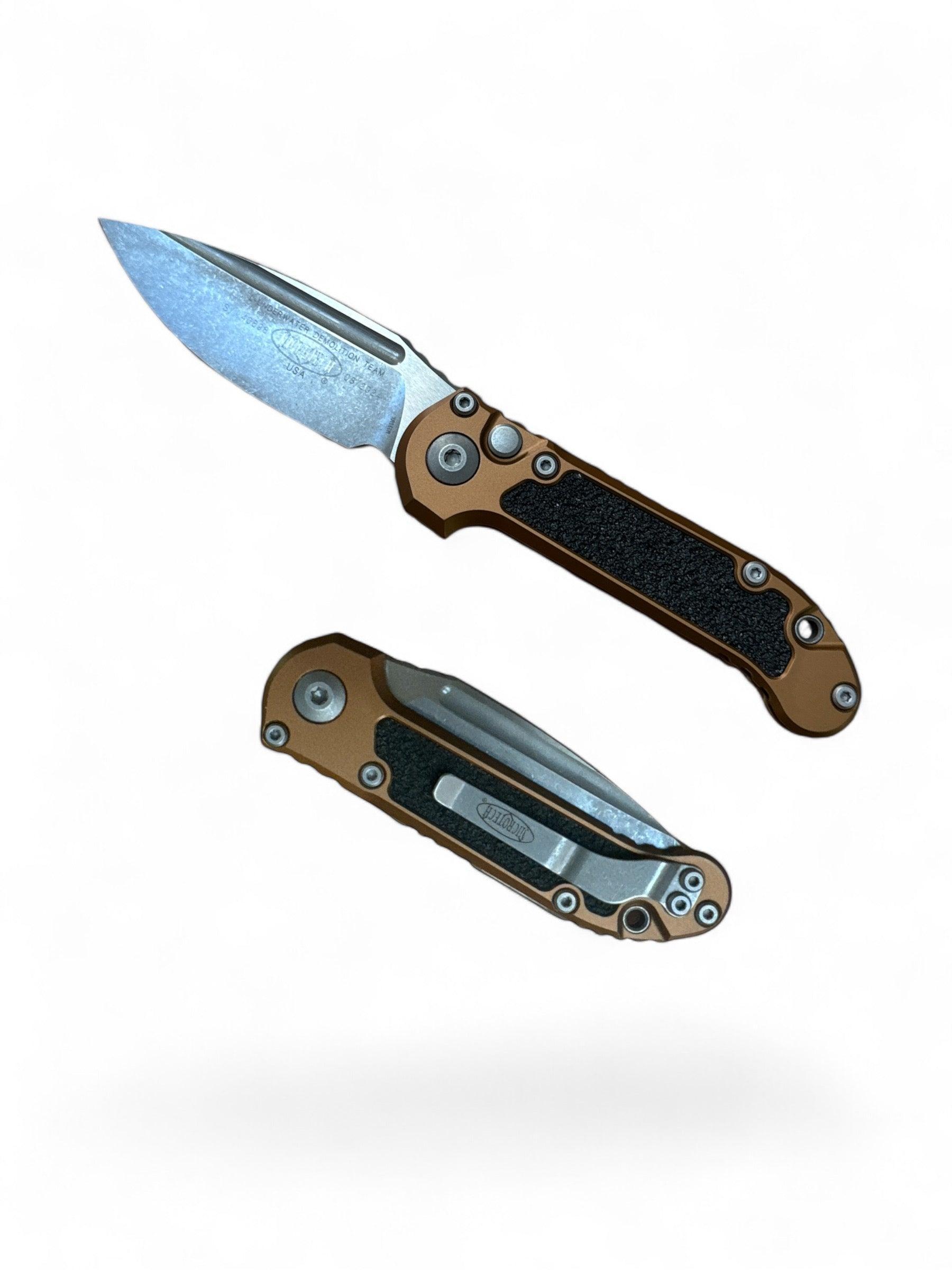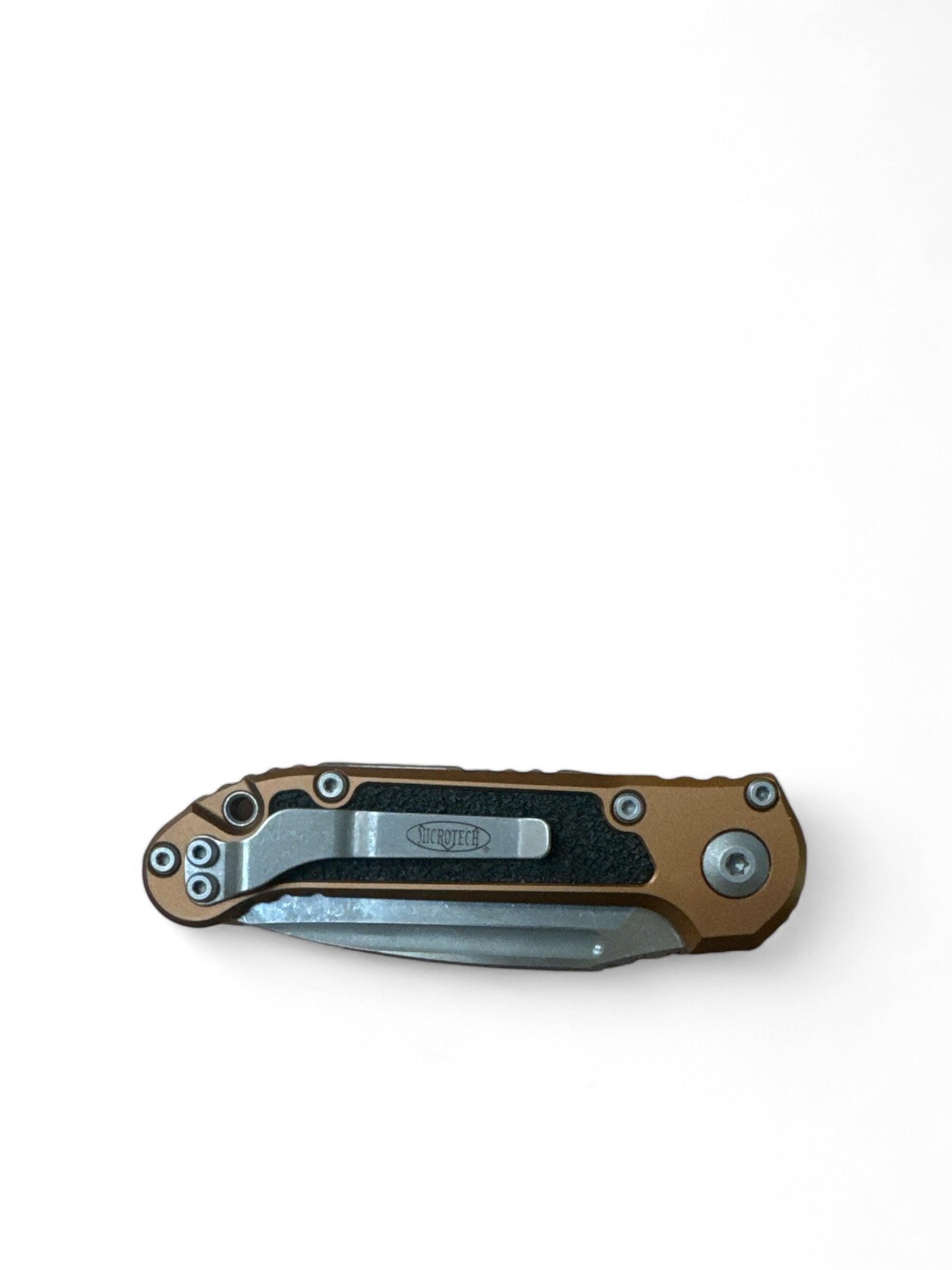 The tan handle is constructed from premium materials, offering an ergonomic design that provides a secure and comfortable grip, even in challenging conditions. Its well-balanced weight and sturdy construction make it easy to control, giving you confidence in every cut. With Microtech's signature craftsmanship, this knife not only stands out in performance but also in durability, designed to withstand the rigors of heavy use.