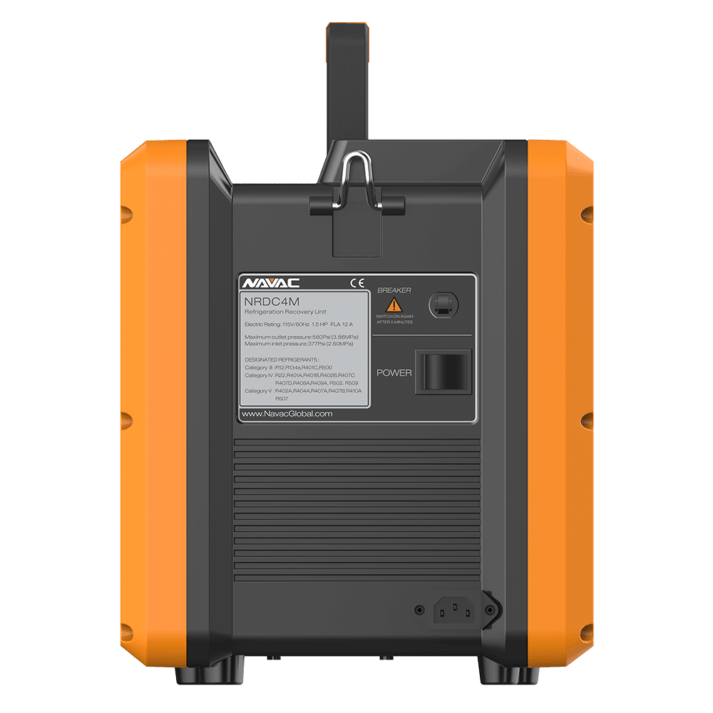Tagged as the fastest and the most powerful machine in the current market, The NRDC4M recovery unit features a 4-cylinder structure that makes it up to 40% faster than the 2-cylinder unit. An oversized micro-channel coil with 3 high-speed cooling fans makes it the ideal recovery unit! The NRDC4M recovery unit is suitable for larger commercial systems and can be used for all commonly used refrigerants.