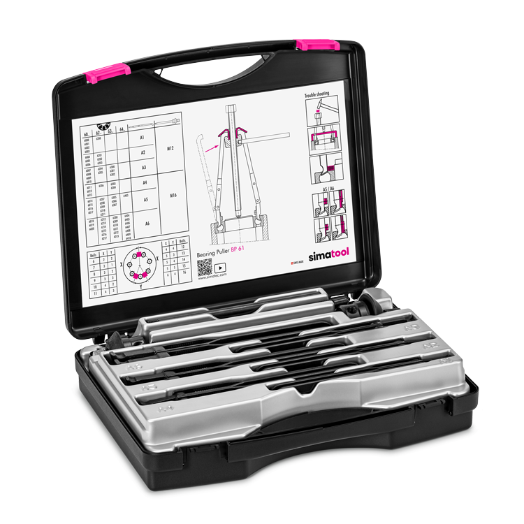 Simatec BP61 Bearing Puller Kit, dismounting deep groove ball bearings,10 to 100 mm.